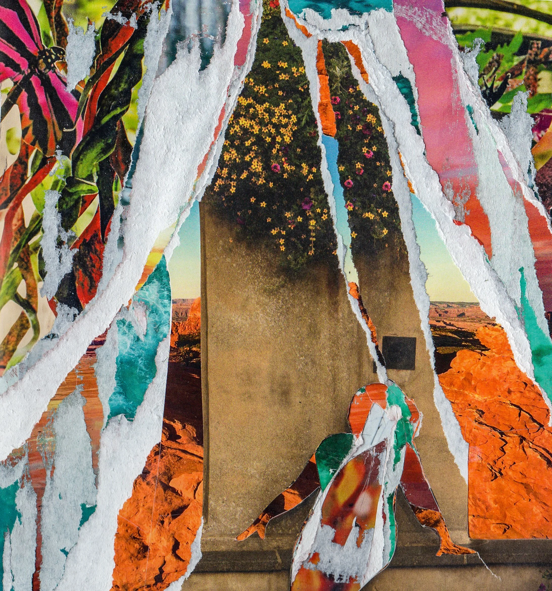 All art is made from accumulated materials: ephemera, old and new magazines, sheet music, gel prints, paint and is mounted to different materials like paper, canvas, canvas board, etc.